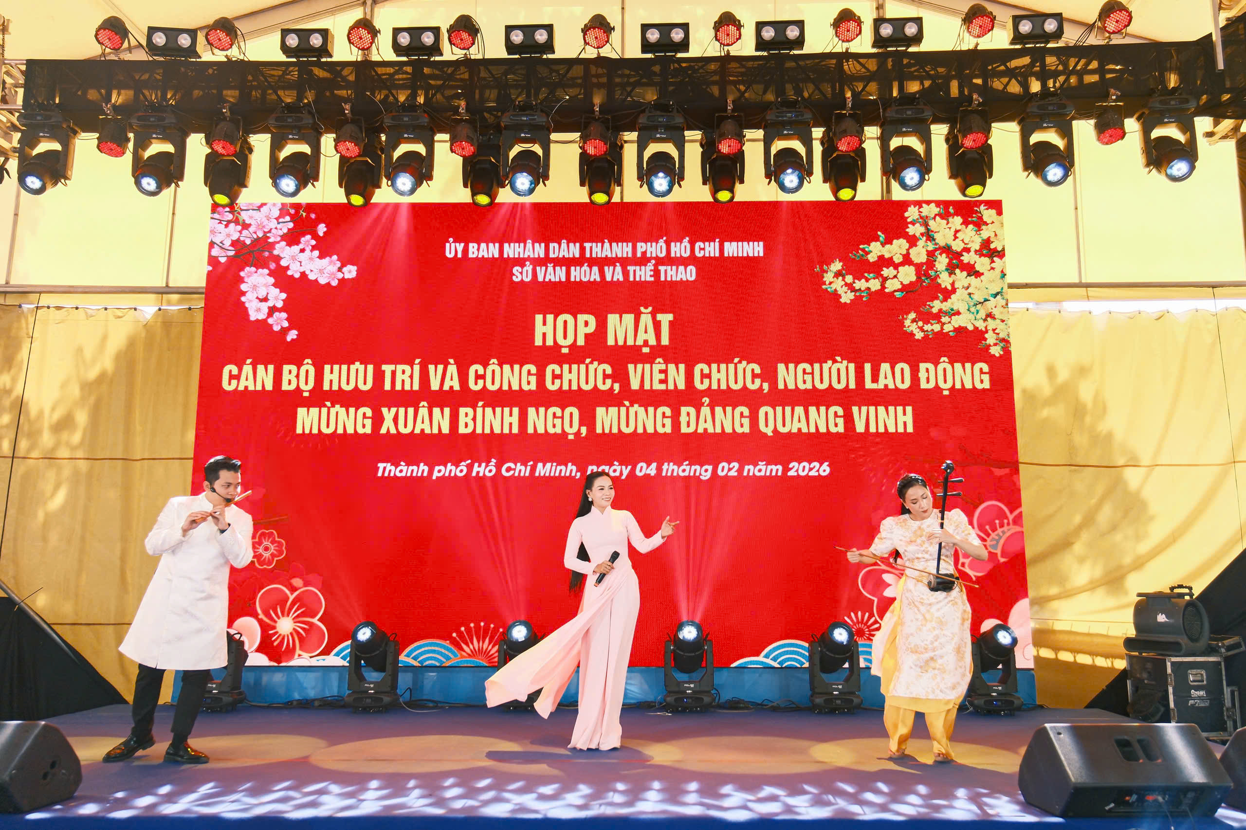 Sáng ngày 04/02/2026, tại Sân vận động Hoa Lư, Sở Văn hoá và Thể thao TPHCM tổ chức Họp mặt cán bộ hưu trí và công chức, viên chức. người lao động - mừng Xuân Bính Ngọ, mừng Đảng quang vinh.