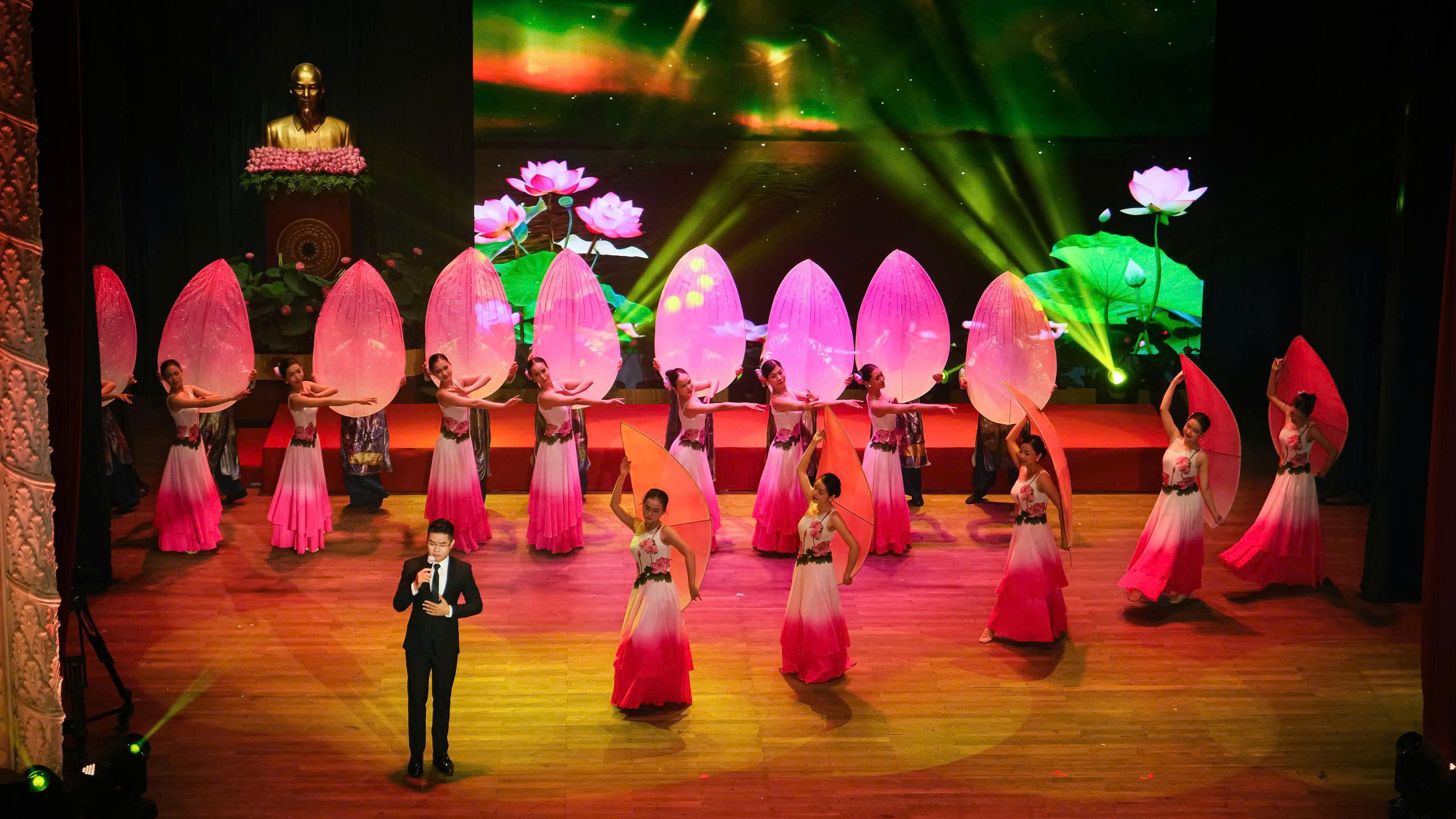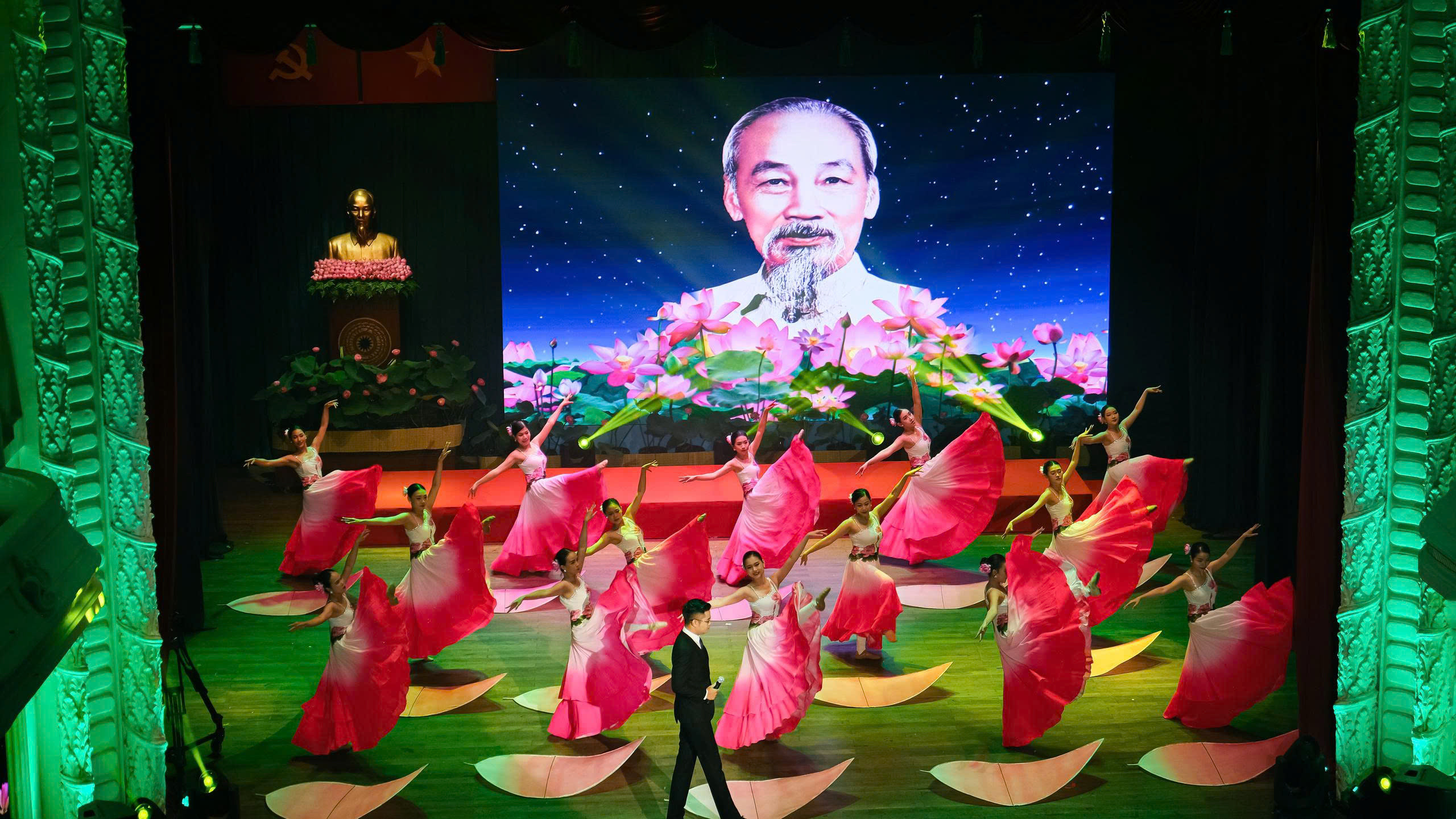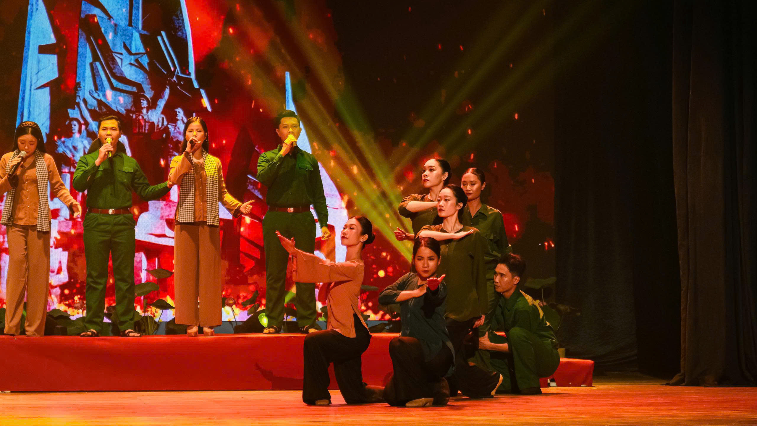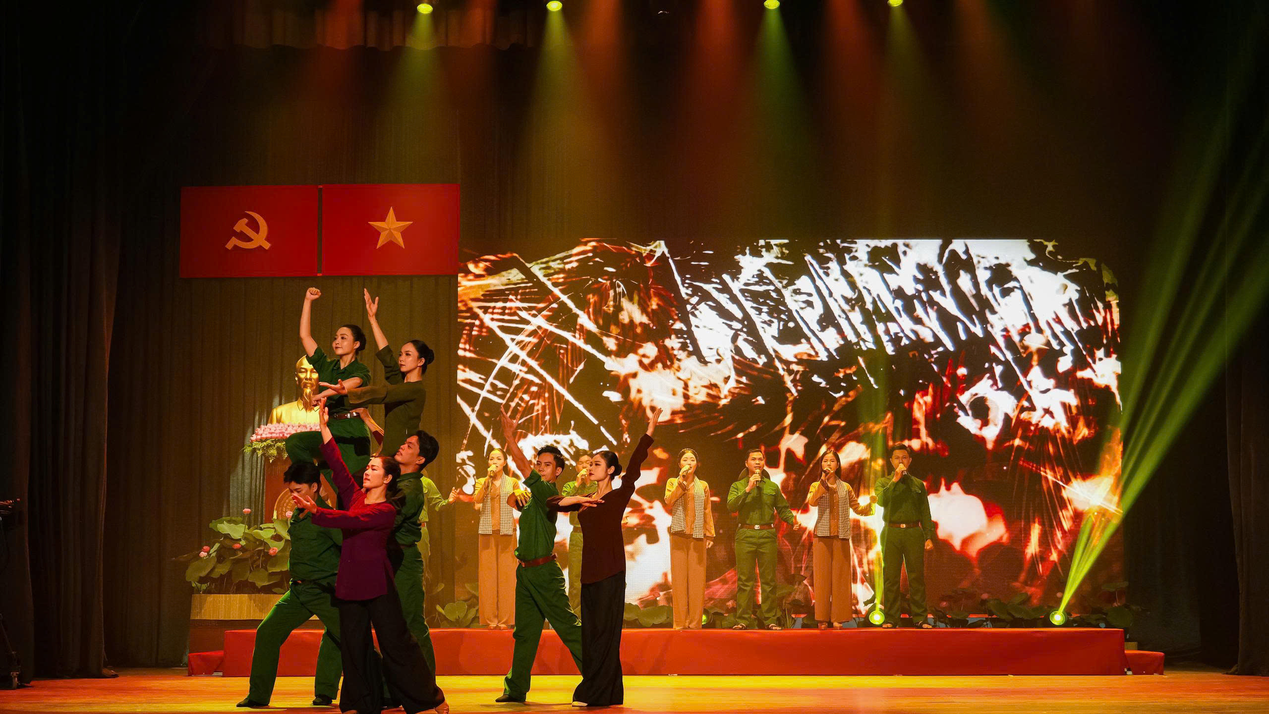Dịp này, Nhà hát Ca múa nhạc dân tộc Bông Sen vinh dự phục vụ chương trình với những tiết mục được đầu tư chỉn chu, nghiêm túc, thành kính… Qua đó, thể hiện tinh thần bất khuất, anh dũng, ý chí quật cường, thiêng liêng của quân và dân Nam bộ trong kháng chiến chống thực dân Pháp.